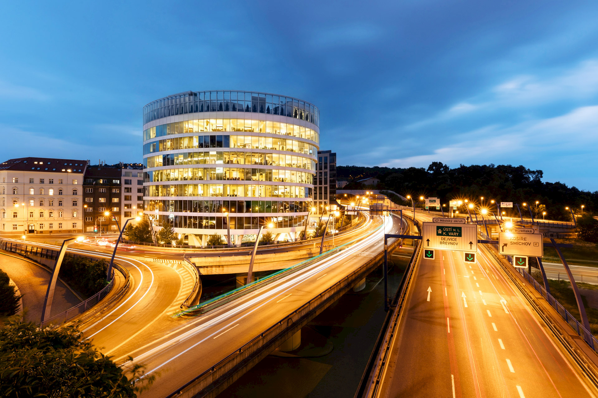 Automobilem je ideálně dostupná díky své poloze přímo u nájezdu na městský okruh a s přístupem na hlavní tahy na Plzeňskou ulici i do centra Prahy.